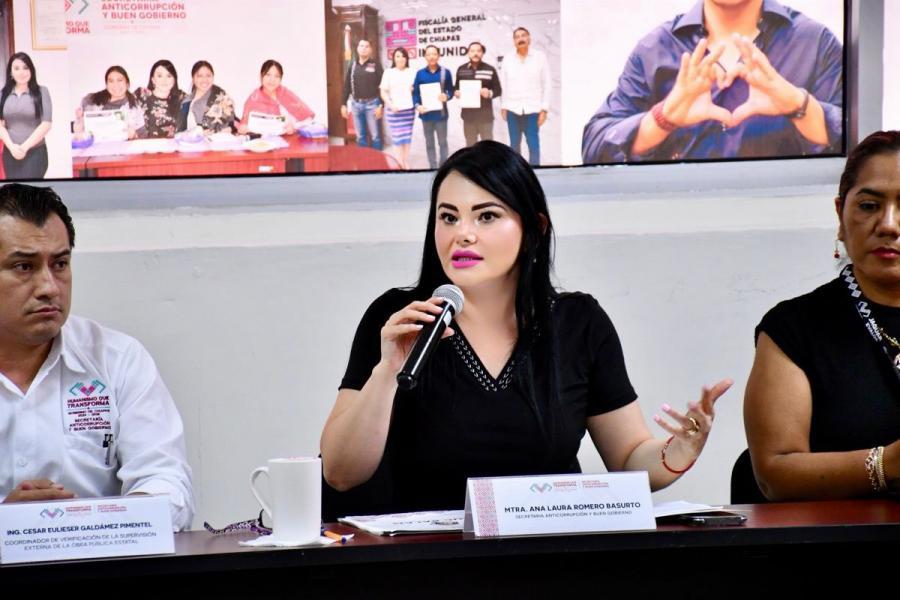 El acto se realizó en la Sala Anticorrupción, contando con la presencia del Ing. César Eulieser Galdámez Pimentel, Coordinador de Verificación Externo de la Obra Pública Estatal y del Gremio Constructor, así como de la Ing. Tania Lucía Vila Cisneros, Jefa de Área de Desarrollo de Sistemas.