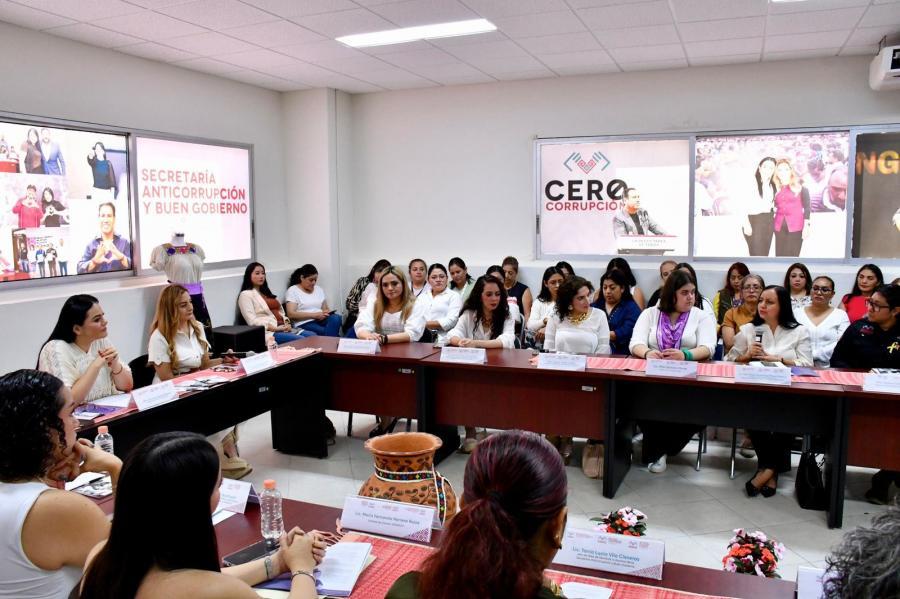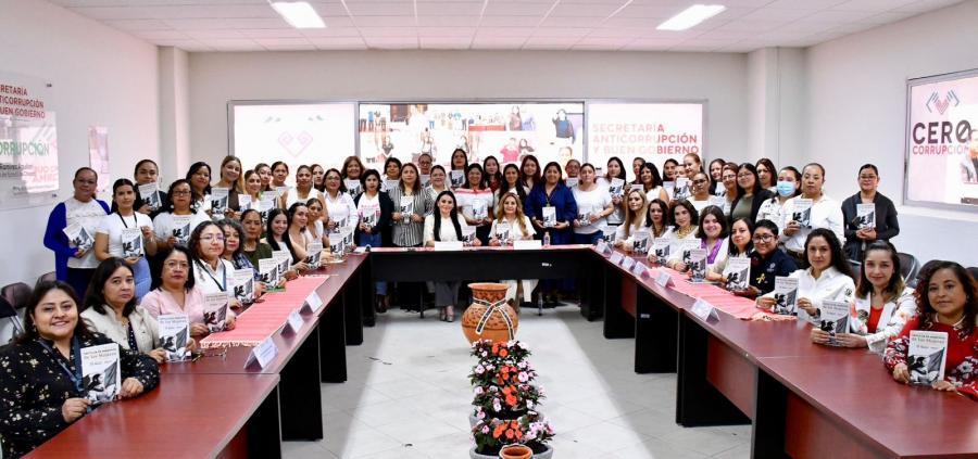 Mtra. Lesdy Cecilia Calvo Chacón, Comisionada Estatal de Víctimas del Estado de Chiapas; Lic. Alma Rosa Mancilla Espinosa, Regidora y Vocal de la Comisión de Igualdad de Género del Ayuntamiento de Ocozocoautla, Chiapas; Lic. Pilar Zenteno Maza, representante de la Colectiva 50+1 Capítulo Tuxtla; Mtra. Lysette Torres Culebro, Presidenta del Voluntariado Mujer Re Evolución, Chiapas; Lic. Sara Alma Guadalupe Maza Gayoso, Consejera de Participación Ciudadana y Enlace de la Comisión de Género de la Red Nacional de CPC’s; Lic. Yuliarht Betfage Montoya Núñez, Titular de la Unidad de Género de la Secretaría Ejecutiva del Sistema Anticorrupción del Estado de Chiapas; Lic. Yanaiza Rodríguez Guichard, Responsable de Presupuestos Públicos, Estadísticas, Monitoreo y Evaluación de la Unidad de Género de la Secretaría Ejecutiva del Sistema Anticorrupción del Estado de Chiapas; Lic. María Fernanda Herrera Rojas, Responsable de Institucionalización, Gestión Pública y Cultura Institucional de la Secretaría Ejecutiva del Sistema Anticorrupción del Estado de Chiapas; Andrea Carbajal González, Titular de la Unidad de Género de Protección Civil; Lic. Nadia Berenice Santos Ibarra, Directora de Evolución Patrimonial, Conflicto de Interés y Ética; Lic. Rosa Isabel Galdámez Ovando, Jefa de Recursos Humanos; Lic. Patricia Juares Nafate, Coordinadora de Programación de Auditorías y Evaluación Interna; Lic. Tania Lucía Vila Cisneros, Jefa de Área de Servicios a Usuarios.