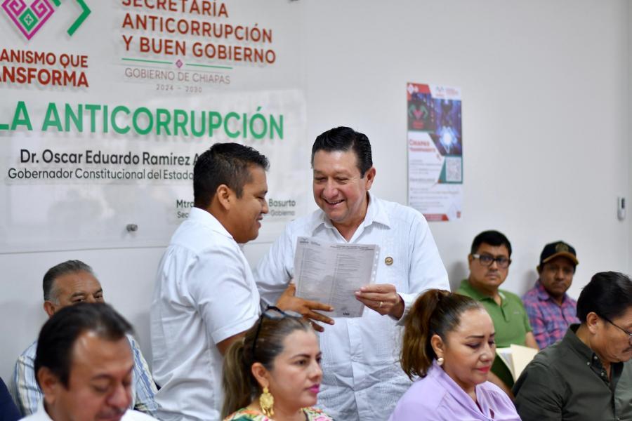 Tuxtla Gutiérrez, Chiapas.–Con el propósito de fortalecer la transparencia, la rendición de cuentas y la legalidad en la obra pública, la Secretaría Anticorrupción y Buen Gobierno llevó a cabo la entrega de 38 Constancias de Registro Único de Contratista (CRUC BALAM) a empresas chiapanecas que acreditaron el cumplimiento de los requisitos legales y administrativos que las facultan para participar en procesos de licitación y ejecución de proyectos de infraestructura.