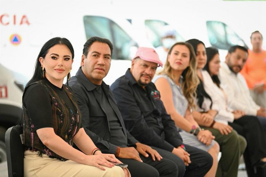 La Secretaria Anticorrupción y Buen Gobierno, Ana Laura Romero Basurto, acompañó al Gobernador del Estado, Dr. Eduardo Ramírez Aguilar, y al Secretario de Protección Civil, Mauricio Cordero Rodríguez, durante la entrega de ambulancias destinadas a fortalecer las Unidades Municipales de Protección Civil.