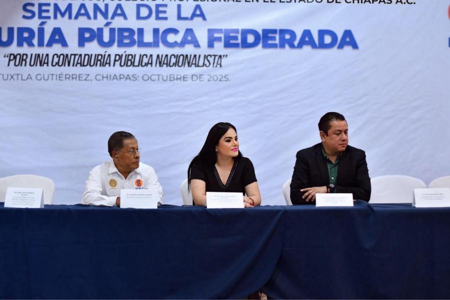 Tuxtla Gutiérrez, Chiapas.– La titular de la Secretaría Anticorrupción y Buen Gobierno, Ana Laura Romero Basurto, participó como invitada especial en la Semana de la Contaduría Pública Federada, un encuentro que congrega a profesionistas, académicos y servidores públicos comprometidos con el fortalecimiento de la transparencia, la rendición de cuentas y las buenas prácticas financieras en el ejercicio gubernamental.