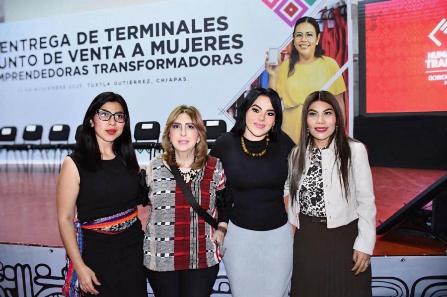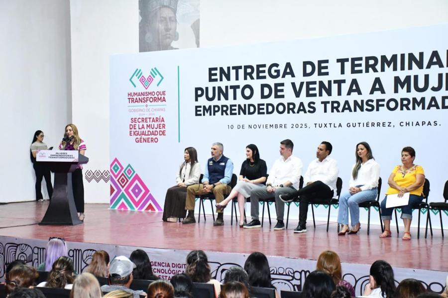Tuxtla Gutiérrez, Chiapas.–La titular de la Secretaría Anticorrupción y Buen Gobierno Ana Laura Romero Basurto, acompañó al Gobernador del Estado, Dr. Eduardo Ramírez Aguilar, y a la Secretaria de la Mujer e Igualdad de Género, Dulce María Rodríguez Ovando, durante la entrega de terminales punto de venta a mujeres emprendedoras transformadoras, con el propósito de fortalecer la economía local, fomentar la inclusión financiera y reconocer el papel de las mujeres como agentes de cambio en sus comunidades.