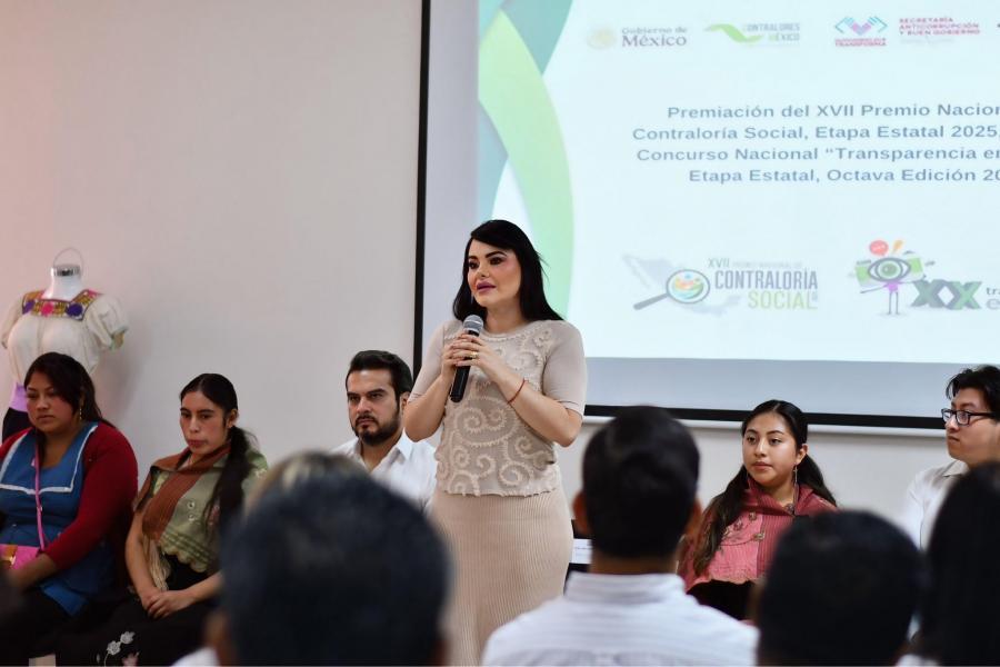 Se premió a las y los ganadores del primer, segundo y tercer lugar de la primera y segunda categoría de la XVII Edición del Premio Nacional de Contraloría Social 2025, en su etapa estatal.