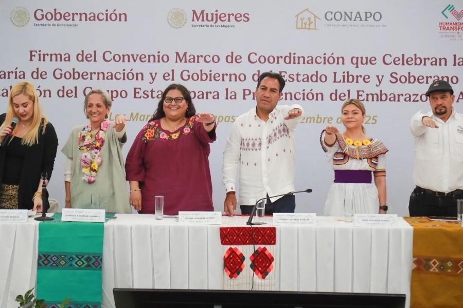Firma del Convenio Marco de Coordinación entre la Secretaría de Gobernación y el Gobierno de Chiapas y reinstalación del Grupo Estatal para la Prevención del Embarazo en Adolescentes